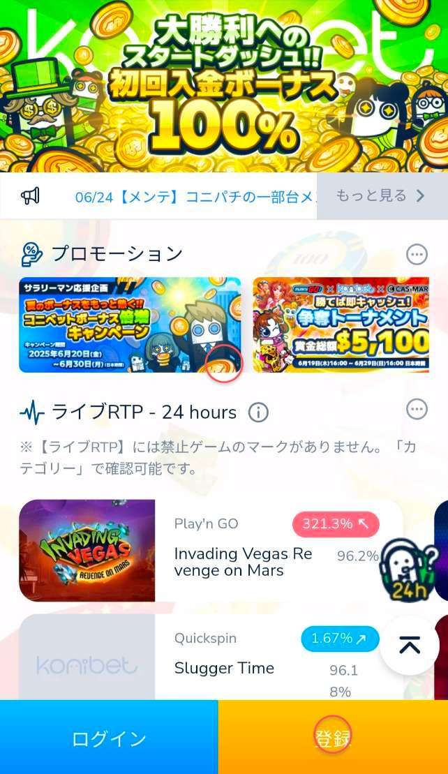 ⑦のRTP設定は、コニベットでは24H,週,月単位で細かくリアルタイムのRTPを見れるので対処可能です。 ⑧のメンテナンスは大体決まった周期で行っているようです。